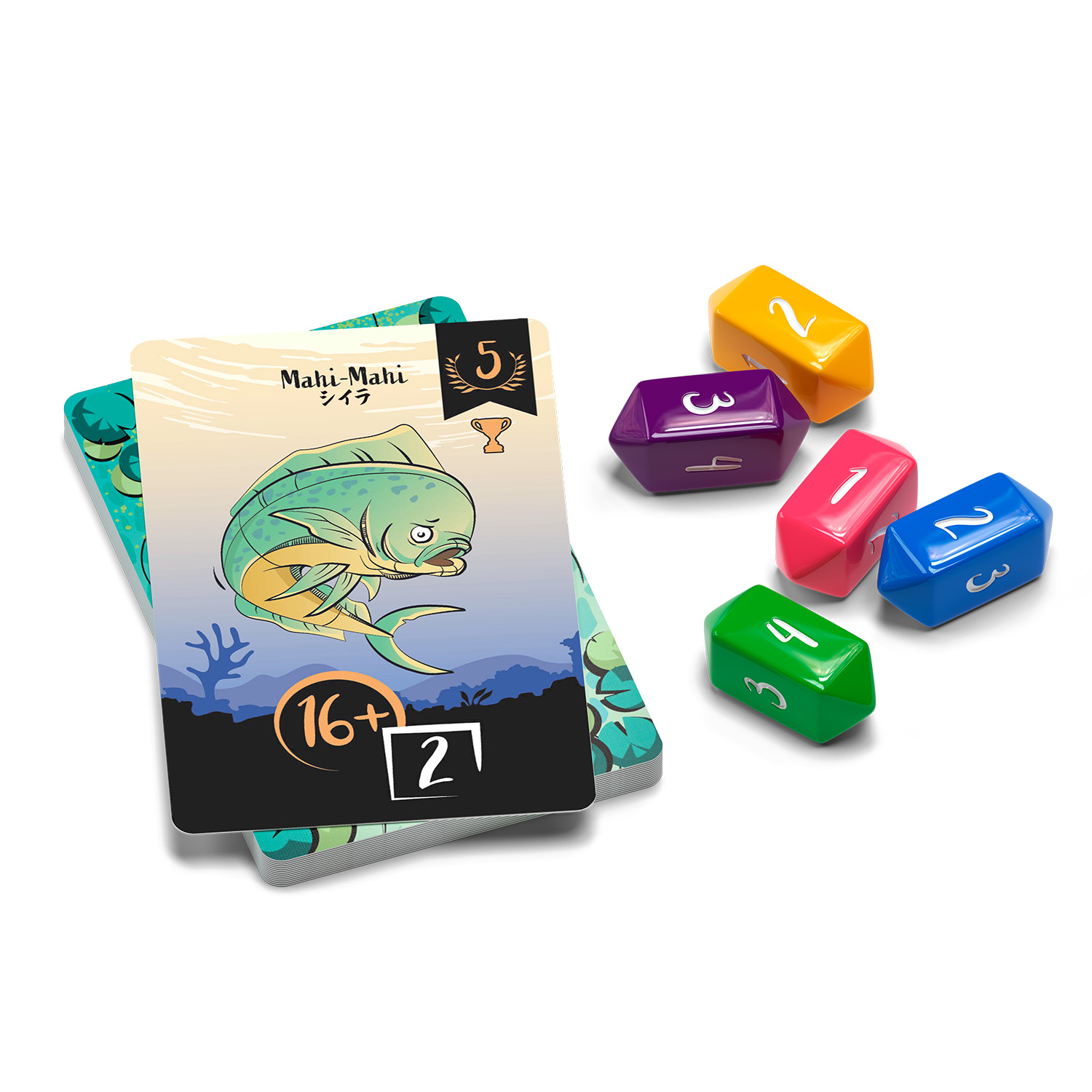 この拡張では、釣るのがより難しい15種類の新しい魚カードが追加され、プレイヤーごとの手番により精密な判定ができるd4(4面ダイス)が1個ずつ加わります。