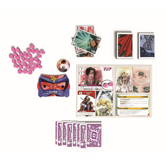 それぞれのプレイヤーマットには固有のキャラクターと能力が描かれており、そこに4枚の「ストーリー」と1枚の「スーパーヒーロー」が公開されることで、スーパーヒーローとなるに至ったあなただけの物語が出来上がるでしょう!